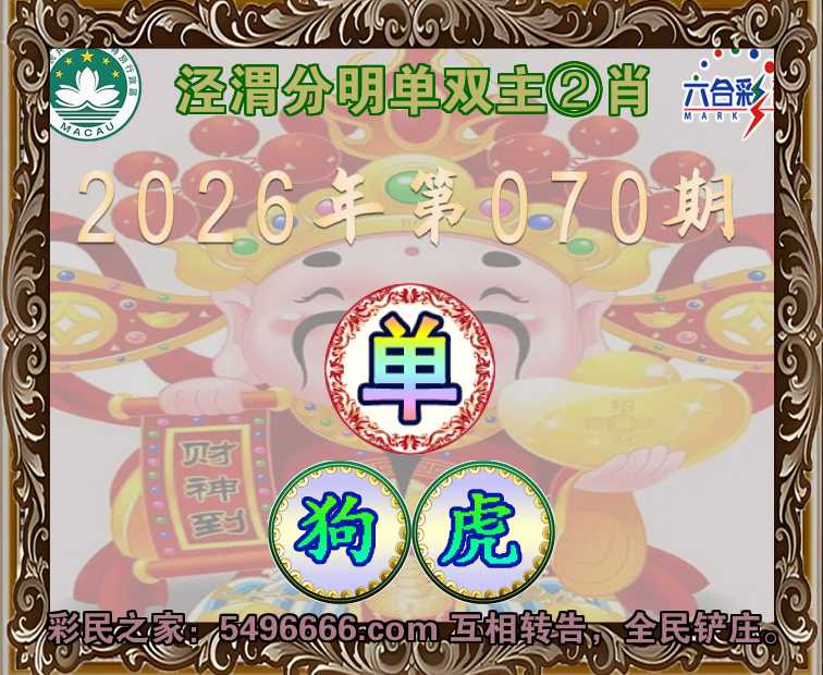070期:〖泾渭分明〗 🧧单双主②肖🧧【单-狗虎】开:00准
