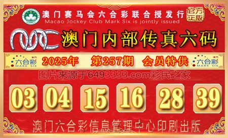 257期:『澳彩内部』『⑥码中特』【03.04.15.16.