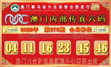 275期:『澳彩内部』『⑥码中特』【04.11.16.23.
