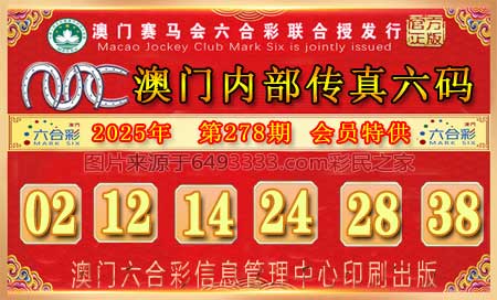 278期:『澳彩内部』『⑥码中特』【02.12.14.24.