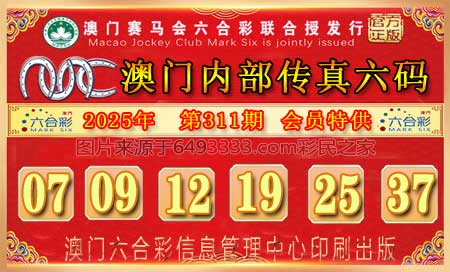 311期:『澳彩内部』『⑥码中特』【07.09.12.19.25.